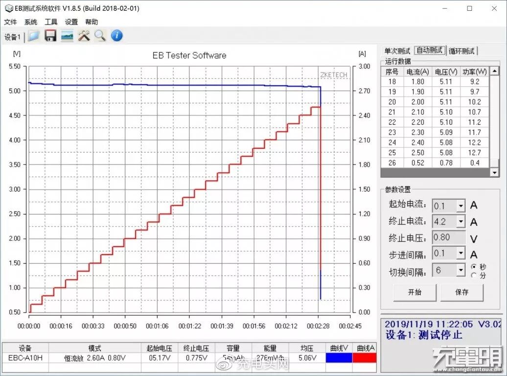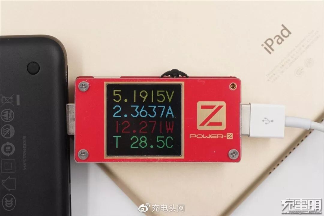 充iPad Air2,电压5.19V,电流2.36A,功率12.27W,开启Apple2.4A充电模式。