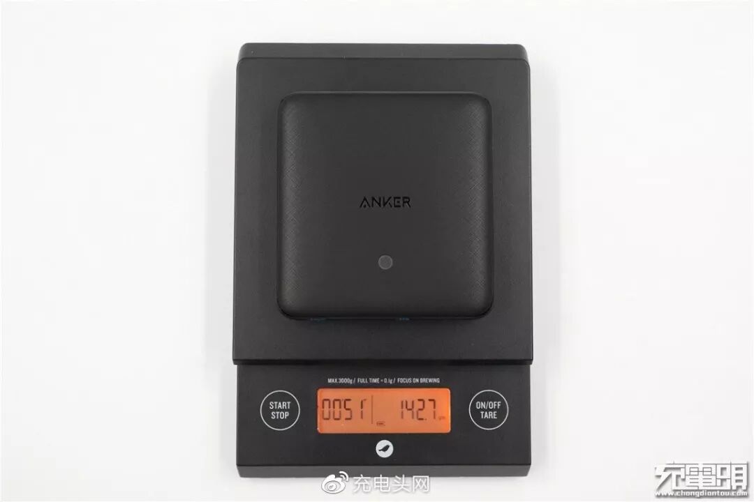 ANKER PowerPort Atom 3 Slim 4口氮化镓桌面充电器重量为142.7g。
