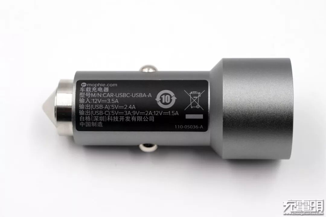mophie作为苹果认可的品牌,在小编的多项测试后,觉得mophie的这款车充也确实符合苹果严苛的标准。车充外观比较硬朗,子弹形状设计,铝合金外壳,优秀的磨砂工艺处理,质感很不错,产品的重量控制也非常好。性能方面,mophie的这款dual USB car charger车载充电器USB-A口支持apple 2.4A协议、DCP协议,USB-C口支持最高18W的PD快充;两个接口同时充电时,互相独立,双口同时输出不受影响。