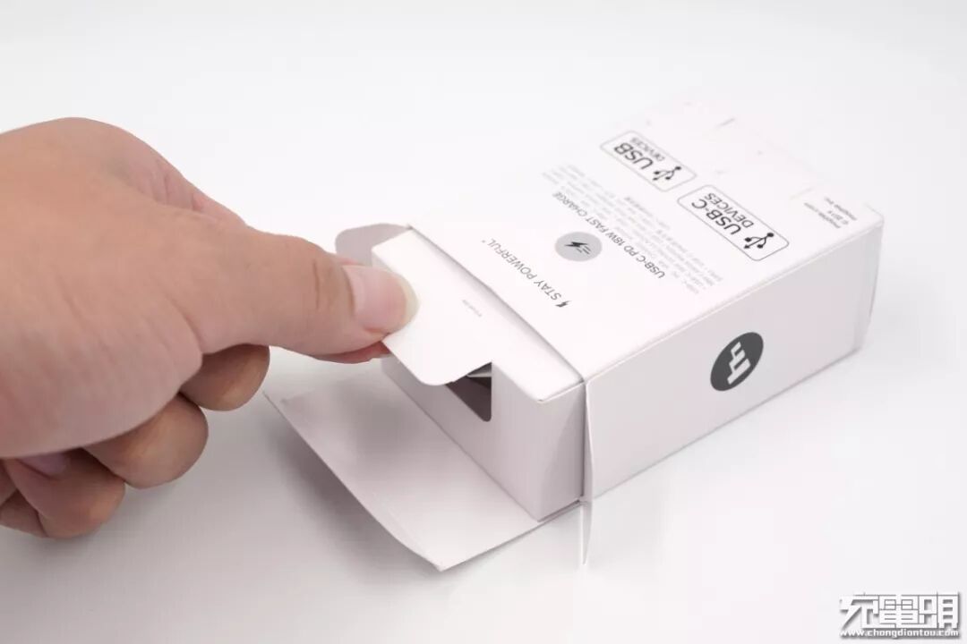 包装内固定车充的纸壳巧妙的采用提拉式设计,方便用户打开包装后取出车充,非常用心。