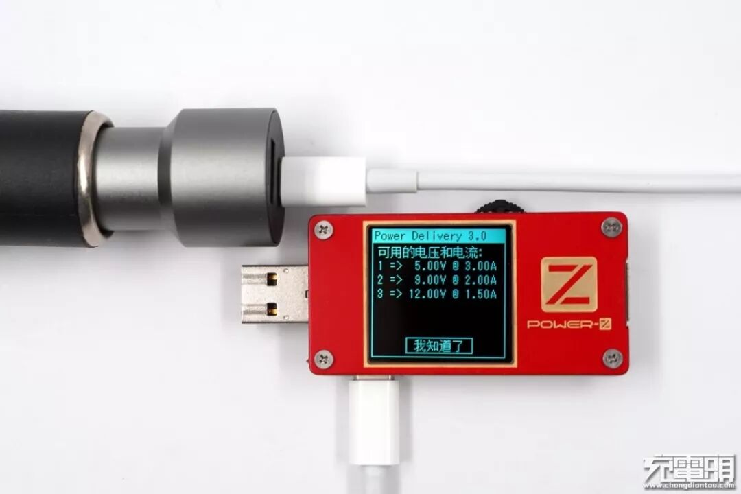 使用ChargerLAB Power-Z KT001测试仪对车充的USB-C口进行协议测试,实测支持apple 2.4A协议、DCP协议。