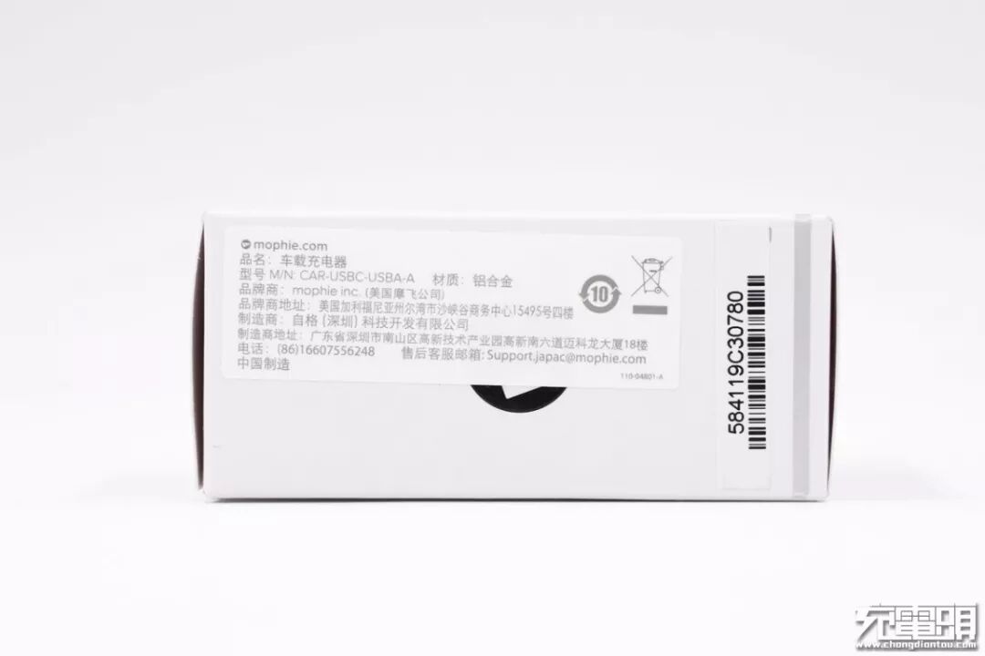包装非常简洁,正面一个mophie 的logo,中间是产品的样图。