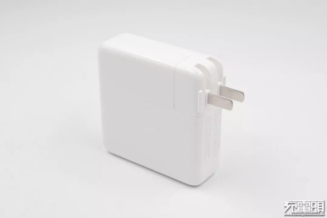 苹果96W充电器评测告一段落,这是苹果有史以来功率最大的USB PD充电器,设计方面,苹果的这枚96W USB-C充电器外形简洁与以往的家族产品同样的风格,USB-C接口从87W的金属母座改为塑料包裹金属设计。充电器插脚可折叠,方便收纳,支持更换插头,解决旅行时插头不匹配的麻烦,方便外出携带。