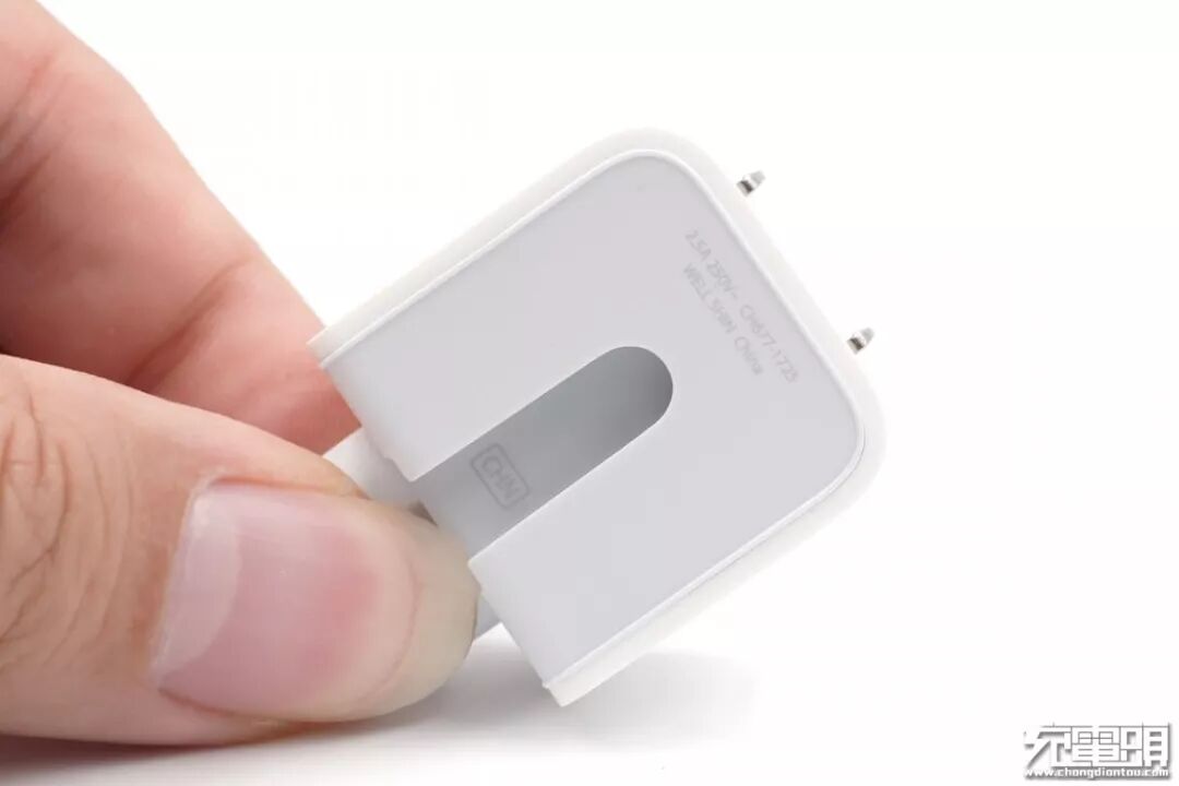 固定的纸槽正放着一枚充电器。