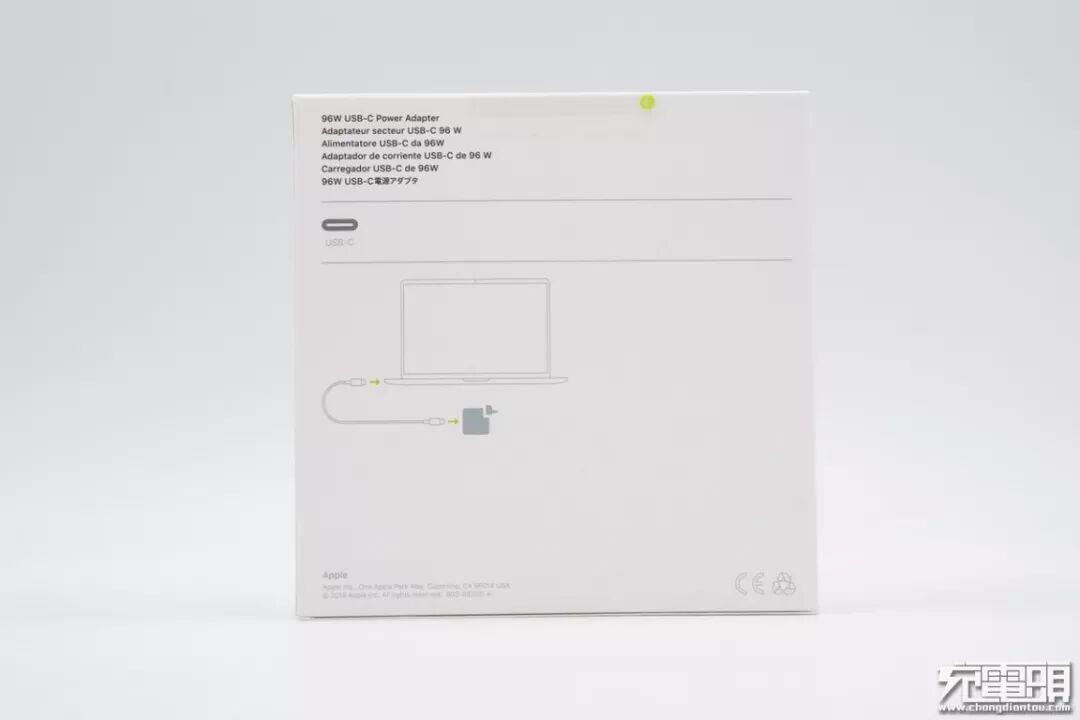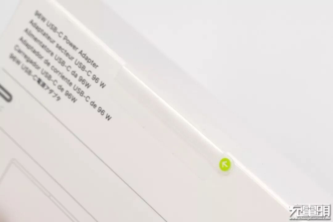 左上角苹果logo以及产品名称USB-C 96W Power Adapter。