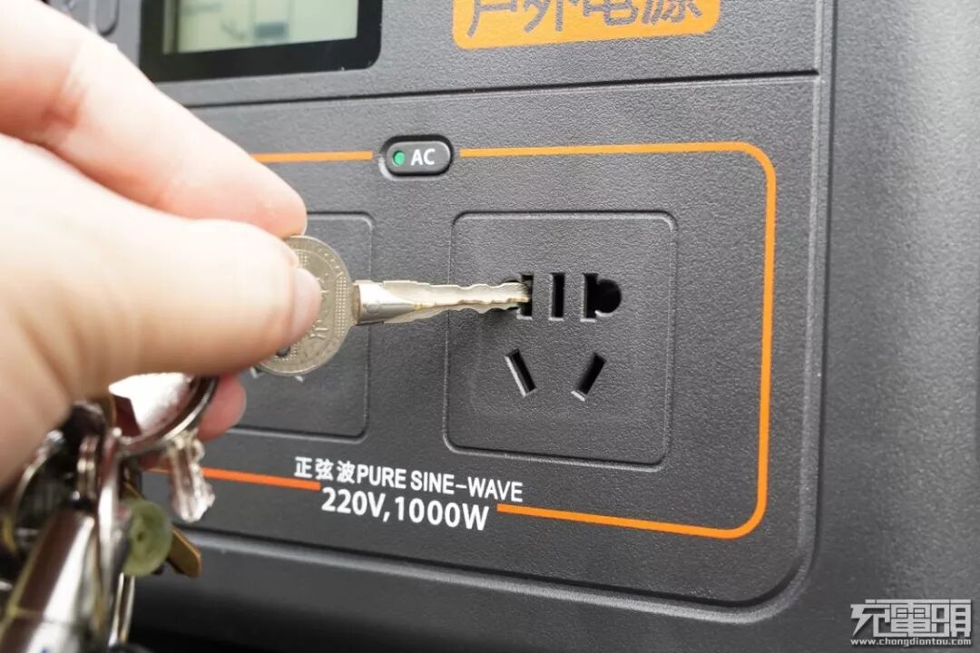 220VAC输出接口功率可达1000W,接口设计更新换代,接口符合新国标防触电保护门设计,可以防止不慎将金属物件插入发生危险,保护使用者的安全,用起来更加放心。