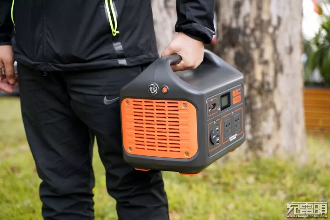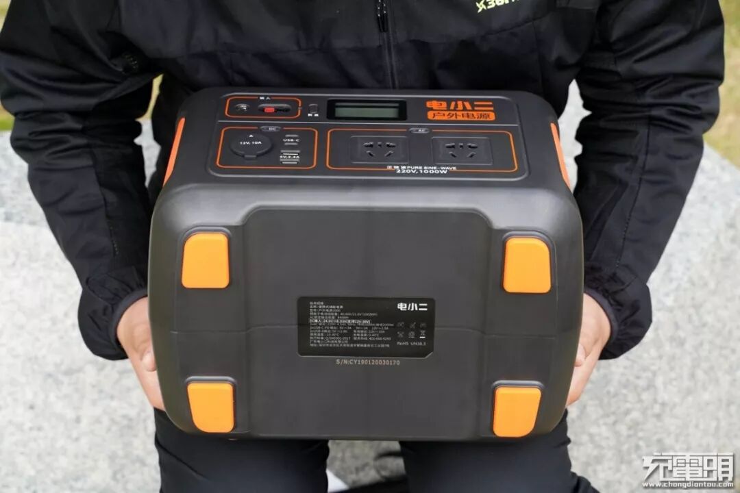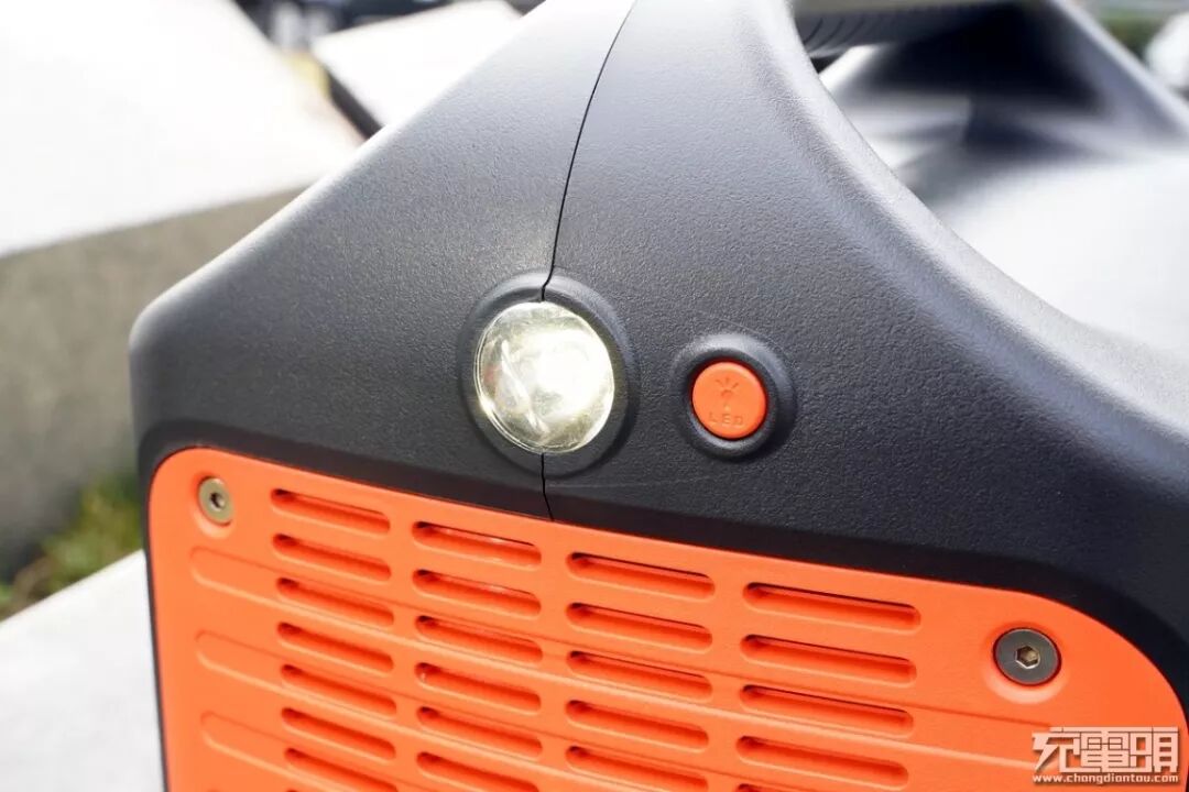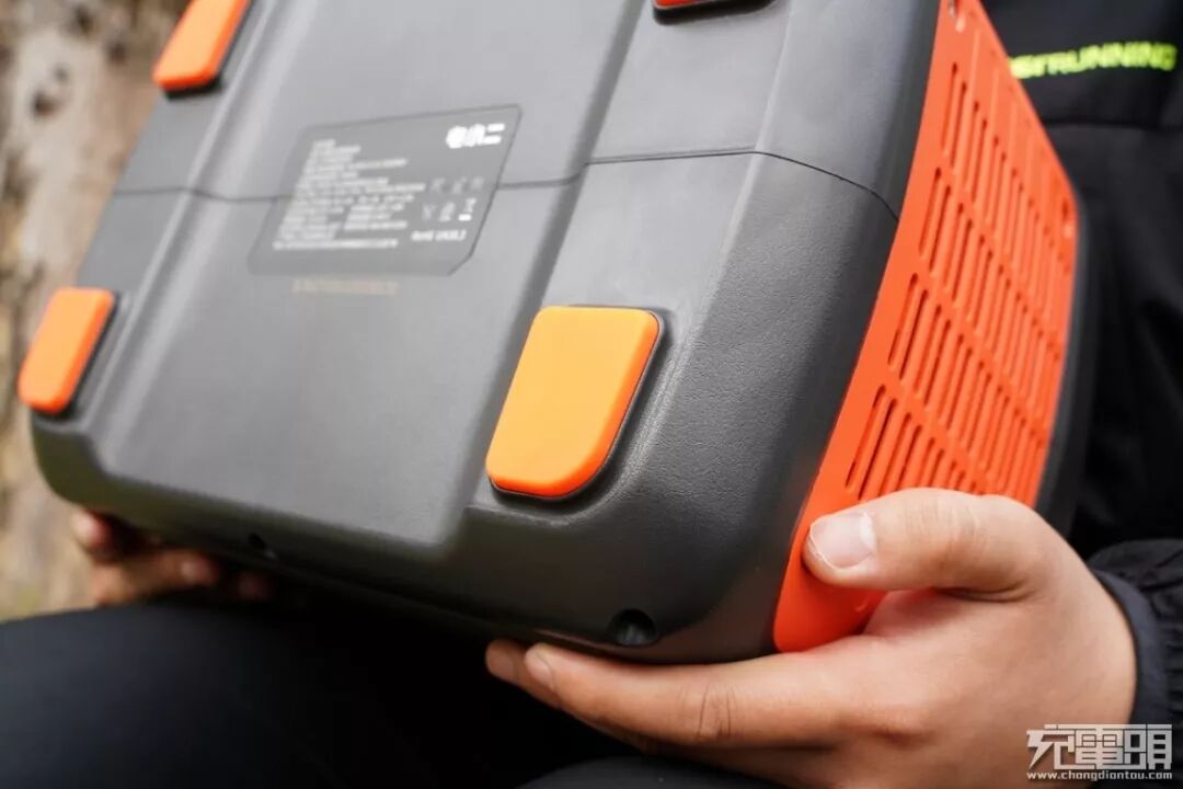 和电小二户外家族的产品风格一致,这次的旗舰级产品电小二户外电源1000依旧采用了黑色和橙色搭配的风格,给人一种耳目一新的感觉。在两侧的橙色区域是产品宽大的散热口,可以有效的把电源产生的热量迅速的排放掉,可以延长电源的使用时间和保证产品使用中的安全。