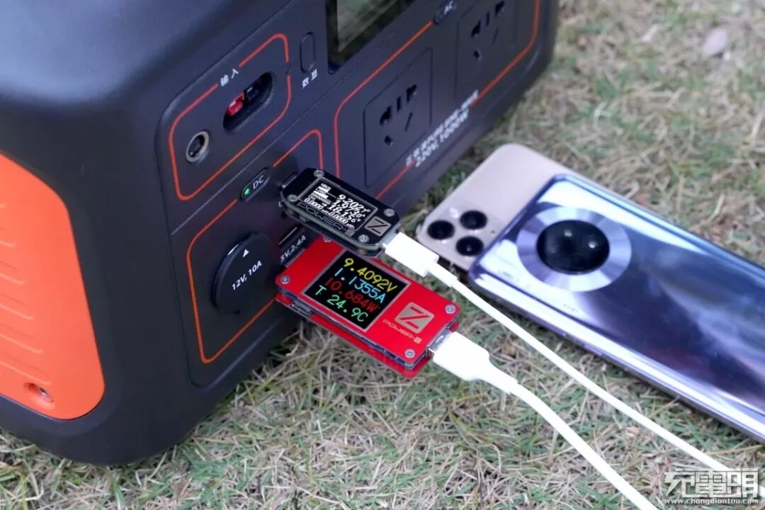 不仅仅是支持无人机充电,在户外游玩一段时间后,手机也会进入低电量模式,有电小二户外电源1000在身边无需电量问题,两台手机分别插入USB-C口和USB-A口,两台手机同时正常的充电,而且从电流表中可以看到两台手机均进入快速充电模式。使用更方便,充电时间大大缩短。