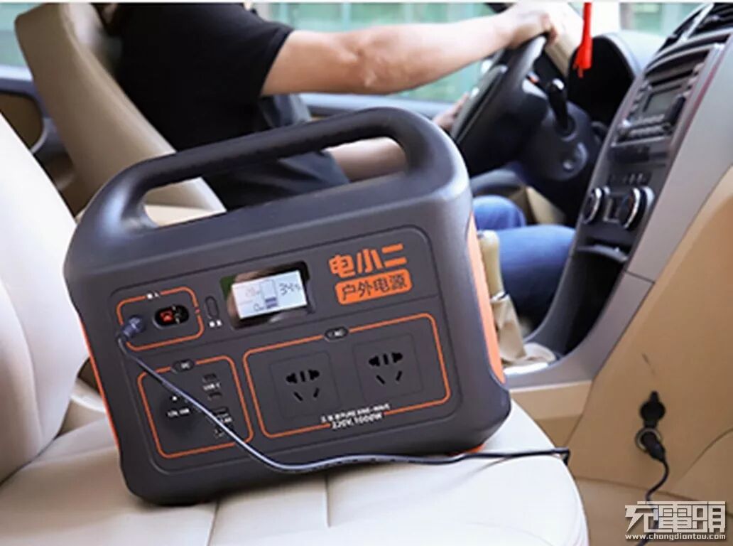 自带的车充输入充电器,一侧插入车上的点烟孔,另一侧的DC插口插入产品的DC输入口可以实现为电小二户外电源1000充电。
