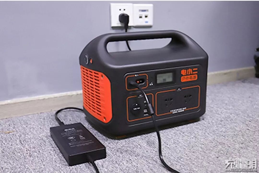 电小二户外电源自身输入部分,支持室内充电,白天使用过后,晚上回到室内直接使用随机附带的充电器即可为电小二户外电源1000充电,方便快捷,无需多余的步骤。