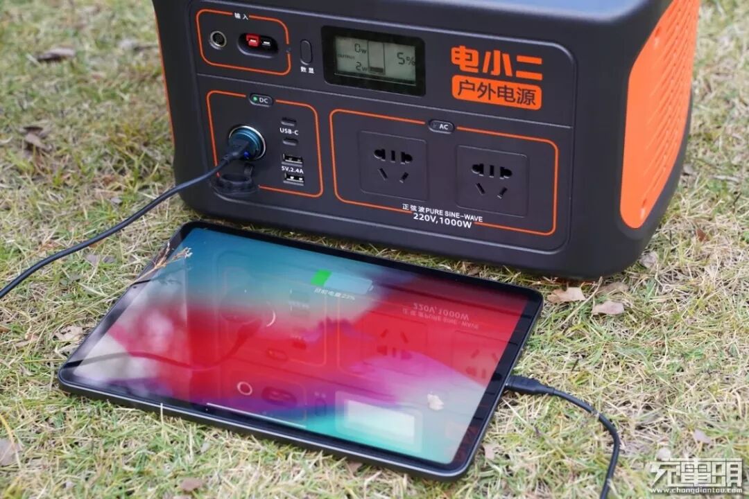 性能方面,电小二1000具有非常丰富的输出接口,220V、USB、车充一应俱全,接口丰富,可支持多个不同的设备同时供电。