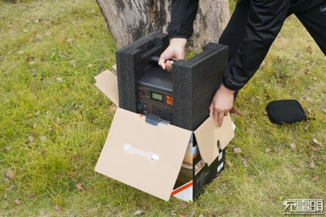 经历了开箱部分,终于见到产品的真实样子了,产品置于草丛中,第一印象看上去就给人一种很符合户外工作的设备特性。外壳参数方面,电小二户外电源1000长约为32cm、宽约为24cm、高度约为22cm,整体重量在10Kg左右。