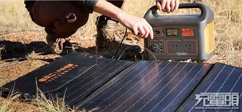 如果在户外,既没有市电也没有车充输入方式,没关系,电小二还为用户准备了第三种充电方式,支持太阳能电池板为电小二1000充电,这样即使在户外没有任何电源的情况下,也可以使用太阳能电池板接受光能为其充电了。