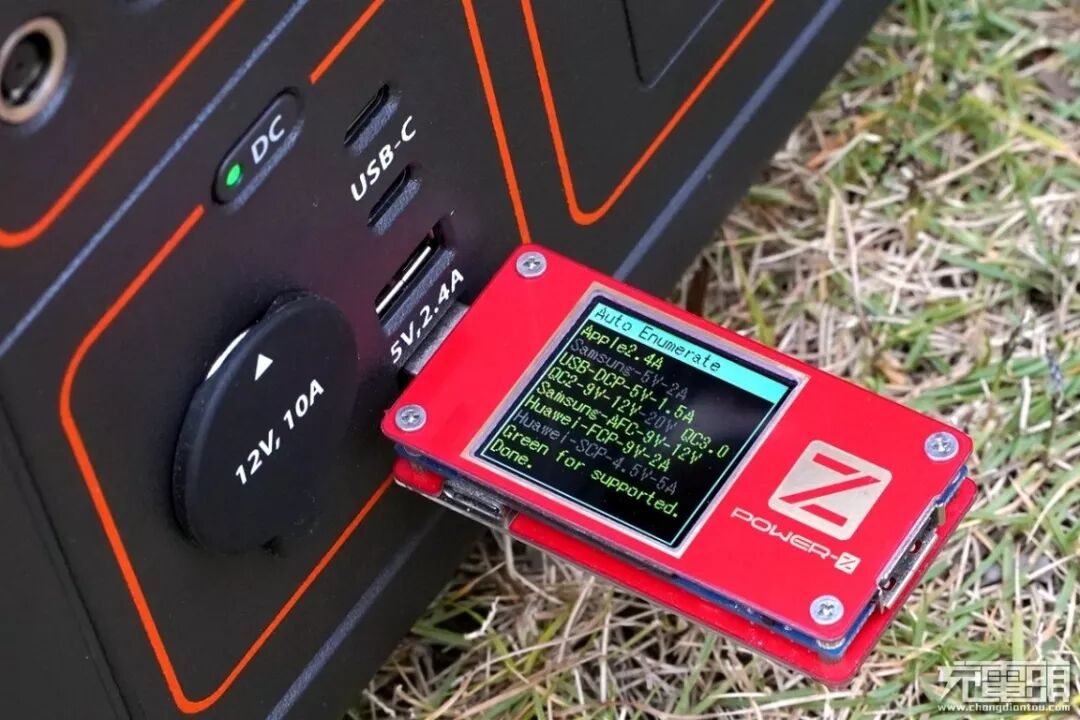 按照惯例,当然要测试一下USB接口支持的快充协议了,使用POWER-Z KT001 对电小二户外电源1000的USB-C接口进行快充协议检测,显示屏中显示的支持Apple2.4A、QC、三星的AFC、华为的FCP、SCP等快充协议。户外电源1000支持PD18W快充协议,用户可以为支持相对应快充的电子设备进行快速充电。