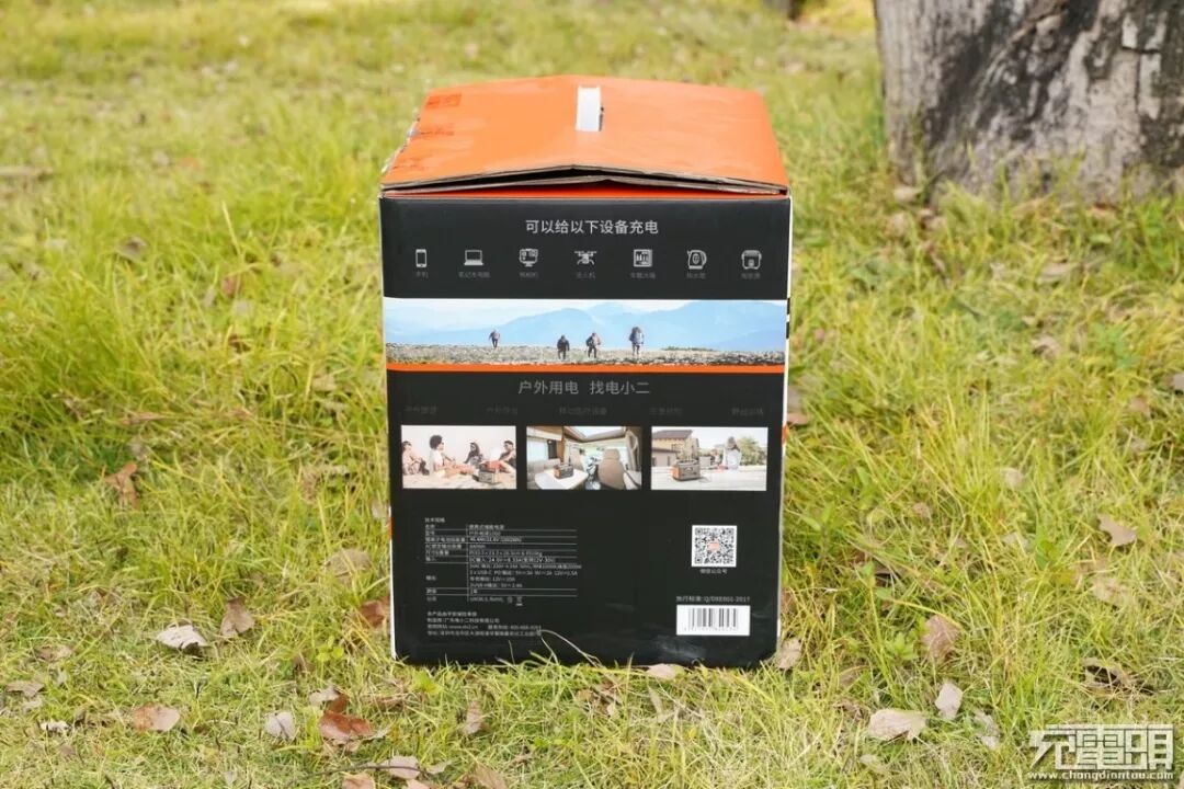 切换镜头至右侧,包装盒描述出了具体使用场景,以及可以支持充电的设备类型,底部为产品的一些具体信息,这个我们后面会提到。