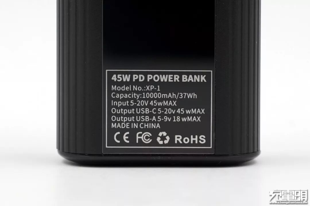 接口方面,产品自带一个USB-A接口和一个USB-C接口,下面的“PD”标识证明USB-C接口支持PD快充;USB-A为输出接口。