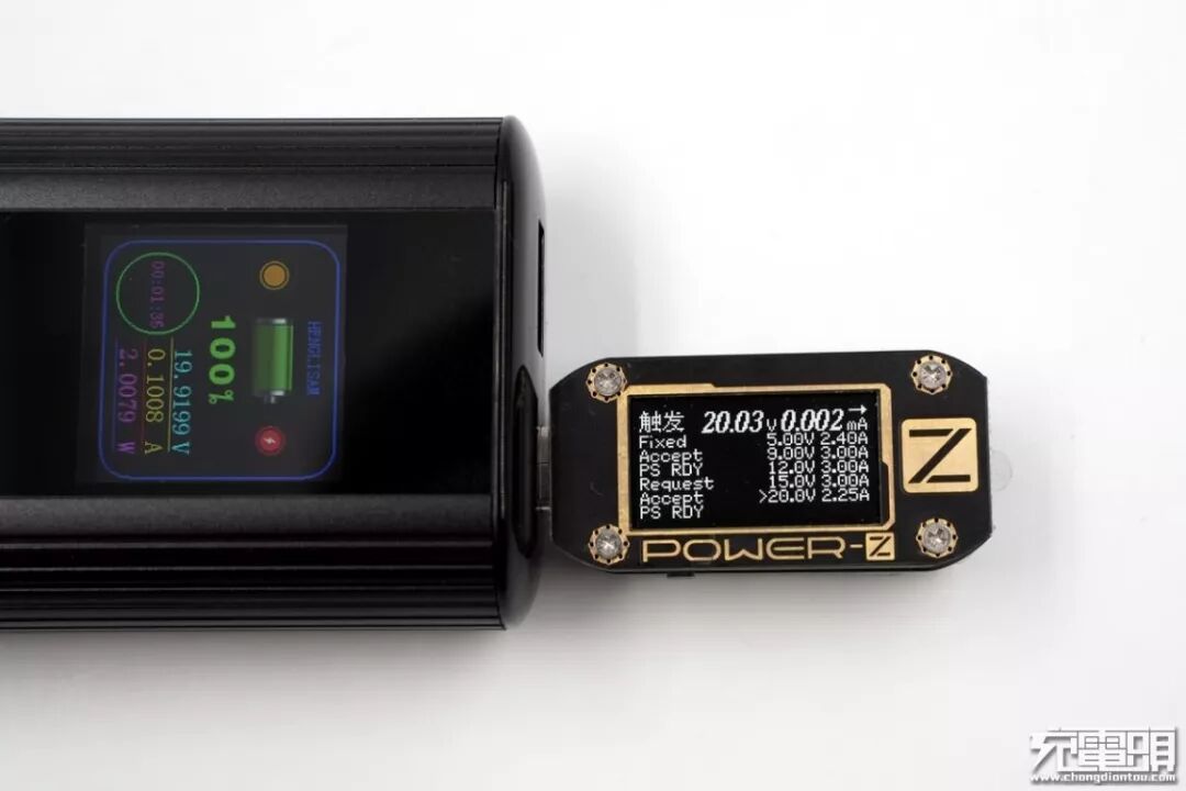 对移动电源的USB-C接口进行PDO检测,支持5V2.4A、9V3A、12V3A、15V3A、20V2.25A 5个PD快充电压档位。