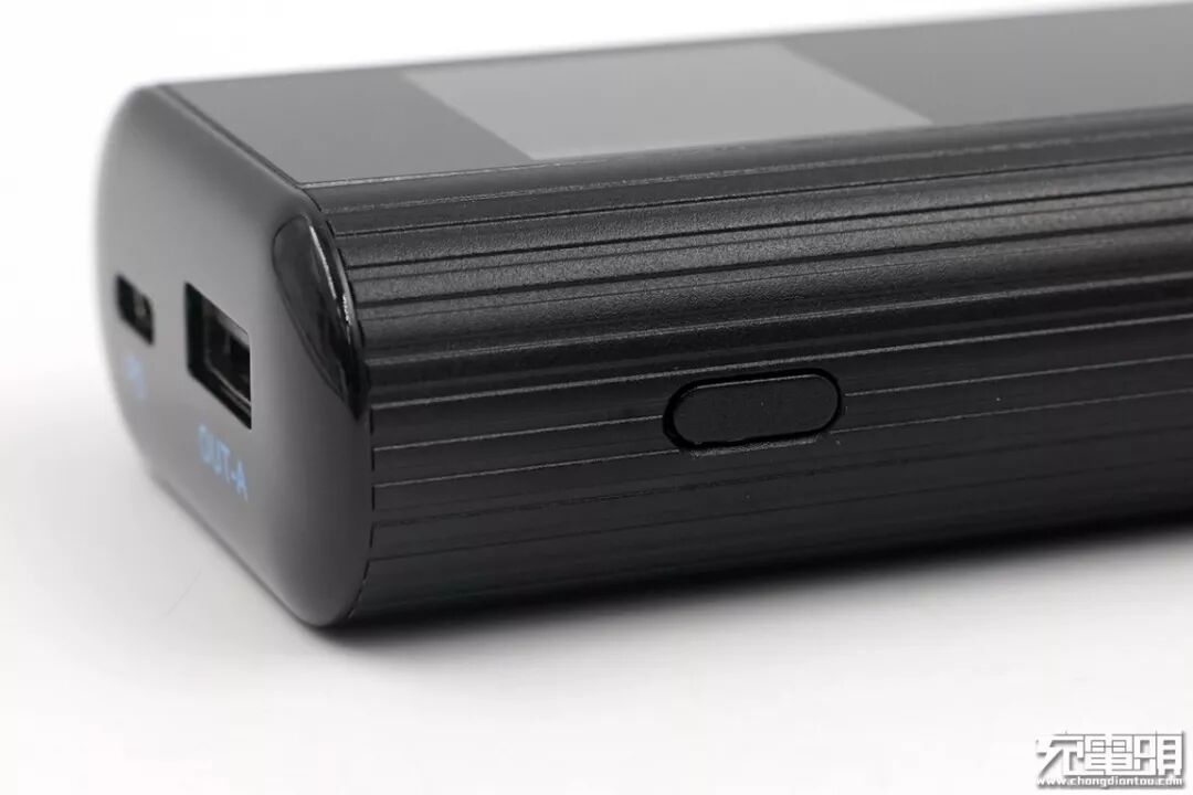 在凹凸设计的侧面放有移动电源的电源开关,整体按键和周围保持在了一个平面上,这样就可以有效的防止误触,在不用的时候也不会不小心碰到,可以节省电量。