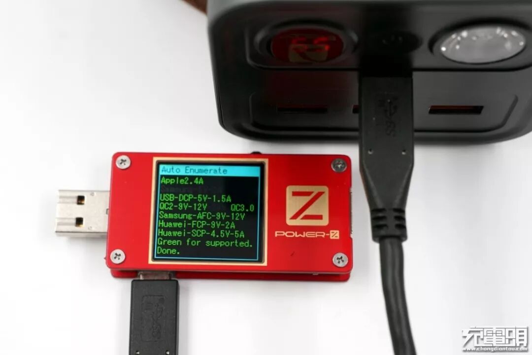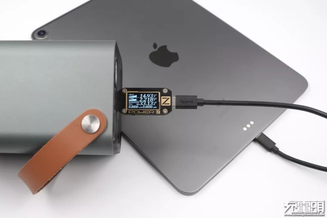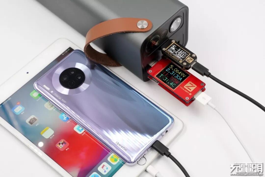 同样,在对USB-C输出测试中,我们选取了九款手机、四款平板对其进行输出测试,测试结果发现USB-C输出过程中成功握手PD协议,开启PD快速充电。尤其在对平板输出时,iPad Pro和iPad Air3的输出功率超过了30W。