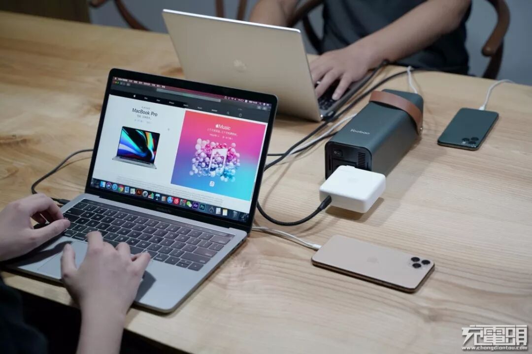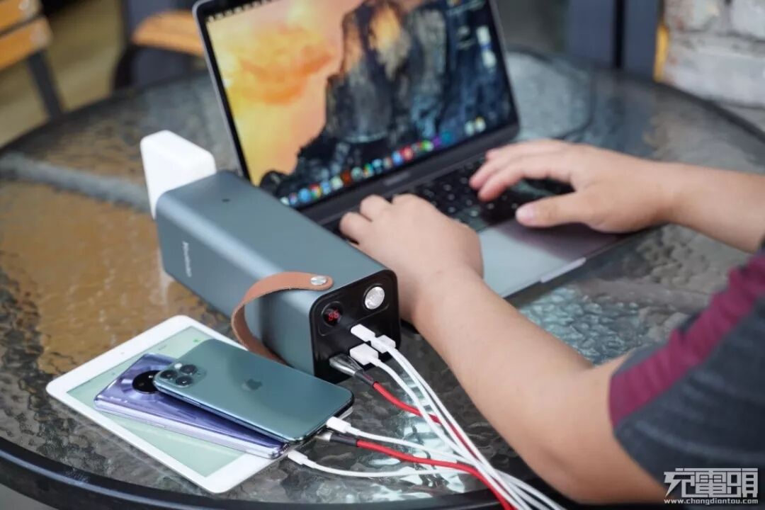 会议室中,负责一个项目的两个人个人在一起开会,员工的电脑在开会突然电量告急,但是很不巧的是,屋子里没有电源插座,从别的屋子里去拉过来的话,找插座太浪费时间,而且即使找到了电线还不一定够长,就需要多个插座连接起来,有这个功夫会议早就开完了。这时候拎来一台羽博EN1储能电源放在会议桌上面就能完美的解决了用电的问题,220V AC输出接口接上一台电脑,USB-C输出接口可以接上另一台电脑,额外的USB-A接口还可以给手机进行充电,一台便携的羽博EN1储能电源就可以解决在会议中的用电问题。
