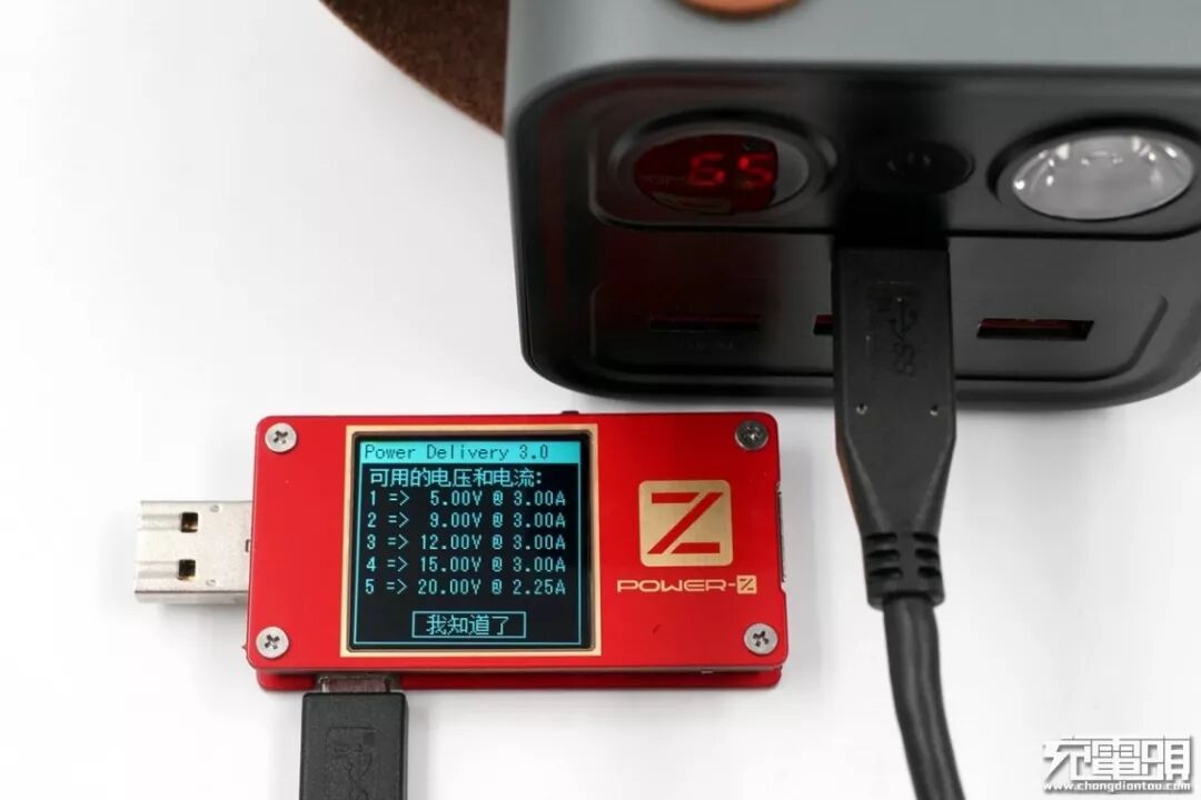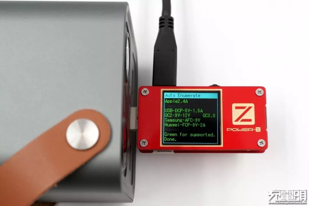 按照惯例,测试一下USB-C接口支持的快充协议,使用POWER-Z KT001对羽博EN1储能电源的USB-C接口进行快充协议检测,结果显示UBS-C接口支持PD快充协议。