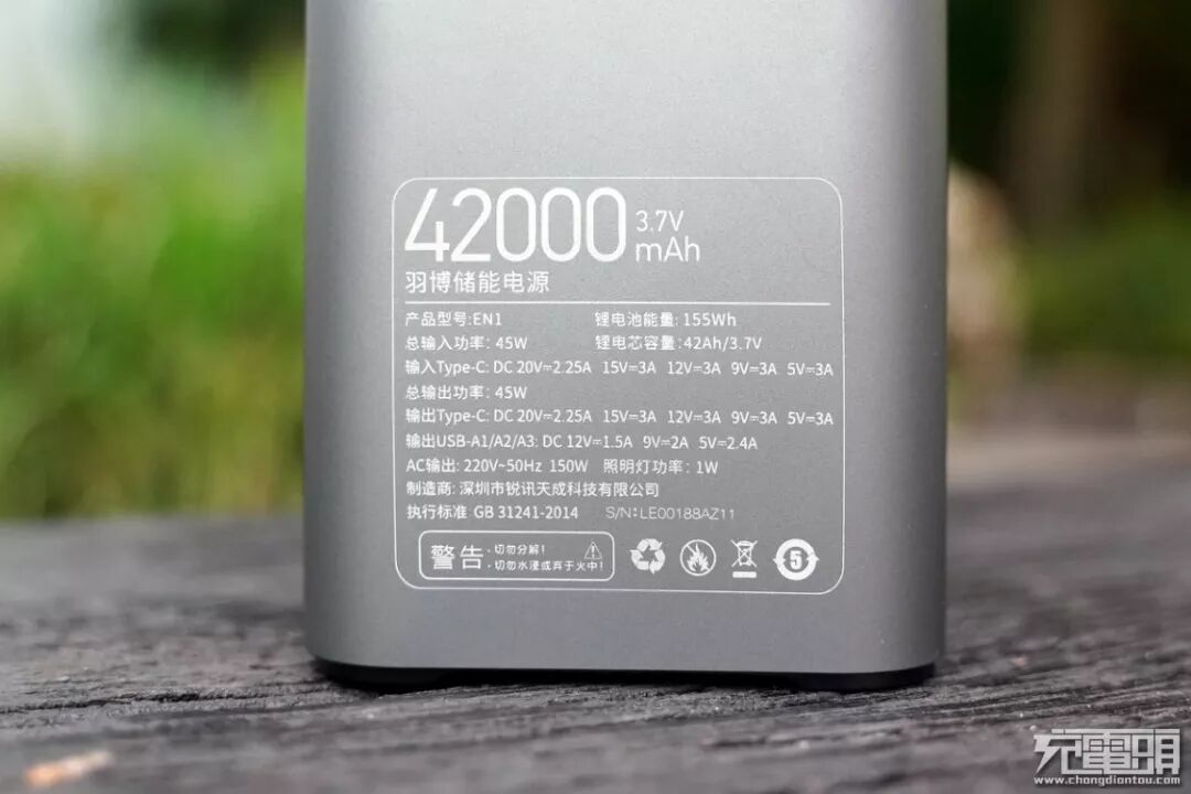 总输入功率:45W 锂电池容量:42Ah/3.7V