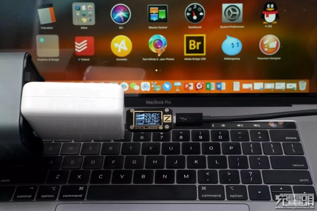 使用羽博EN1储能电源对MacBook Pro 16进行220V AC输出测试,测试的功率为20.42V2.87A 58.76W 开启PD快充模式。