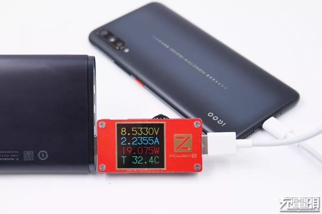 VIVO 22.5W闪充移动电源作为VIVO旗下最新推出的移动电源,在为自家的两台VIVO手机充电方面可以顺利的开启10V2.25A 22.5W VIVO FlashCharge闪充模式。而且移动电源的输出接口还支持QC快充协议,在为小米9手机充电的时候也可以成功握手9V电压档位,开启QC快充模式。