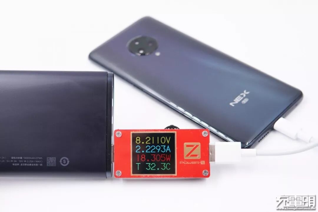 使用产品对 VIVO NEX3 5G进行充电测试,测试表中显示的功率为8.21V 2.22A 18.30W 。同样成功握手VIVO FlashCharge闪充。