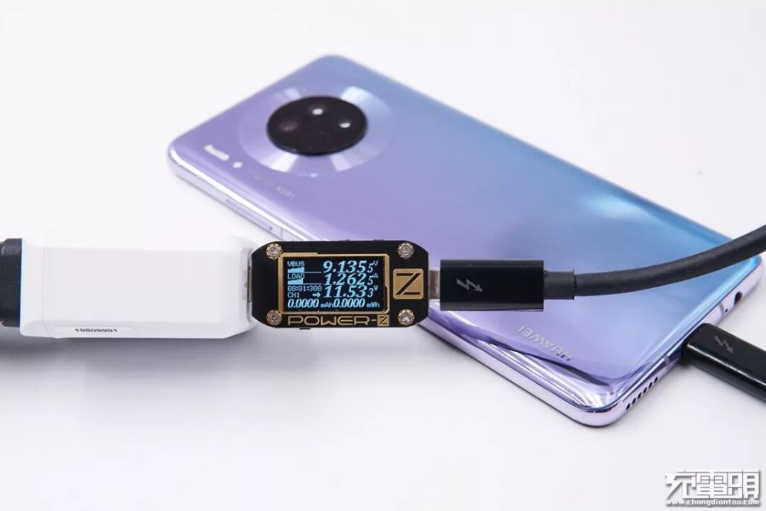 使用iWALK 18W充电器给华为Mate 30进行充电测试,实测电压9.13V,电流1.26A,功率11.53W,成功开启PD快充。