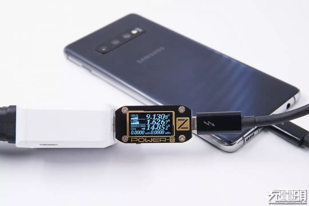 使用iWALK 18W充电器给三星 S10+进行充电测试,实测电压9.13V,电流1.62A,功率14.85W,成功开启PD快充。