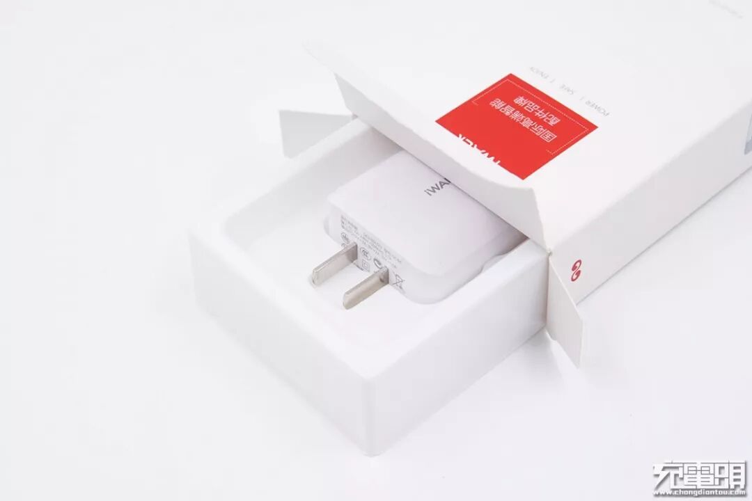 去掉外包装盒,放置于固定槽中间位置的iWALK 18W充电器显露出来。