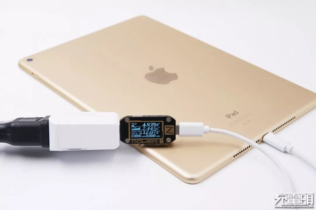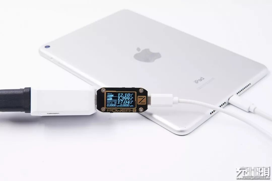 使用iWALK 18W充电器给iPad mini 5平板进行充电测试,实测电压12.18V,电流1.39A,功率17.04W,成功开启PD快充。