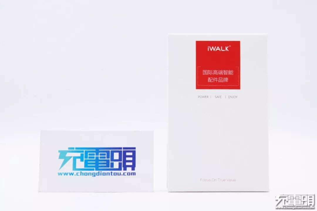 iWALK 这款18W充电器的包装盒十分简约,正面红色区域印有iWALK的品牌logo,并带有国际高端智能配件品牌字样。