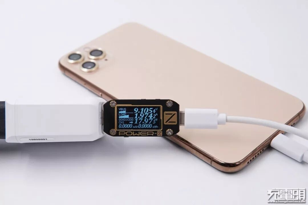 使用iWALK 18W充电器给iPhone 11Pro Max进行充电测试,实测电压9.10V,电流1.97A,功率17.97W,成功开启PD快充。