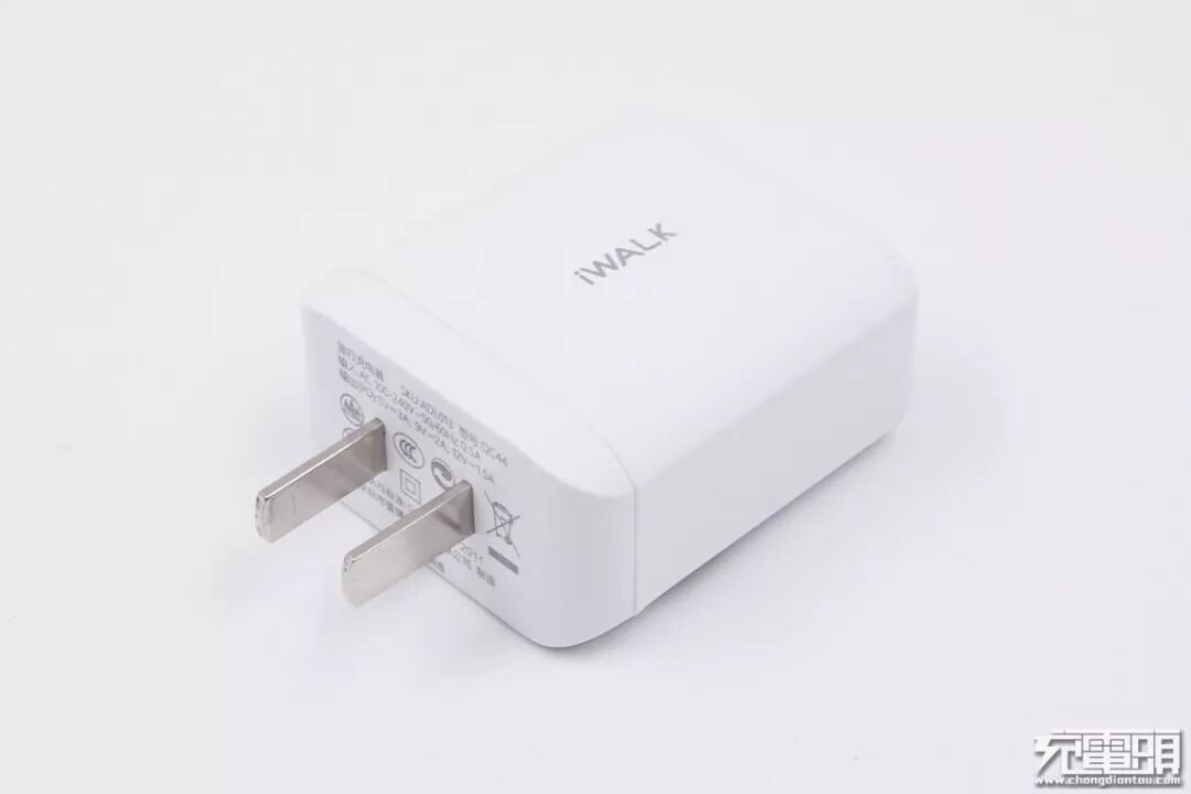 iWALK 这款18W充电器采用的是国行标准的两脚插头,适用于国内标准的插座和插排。
