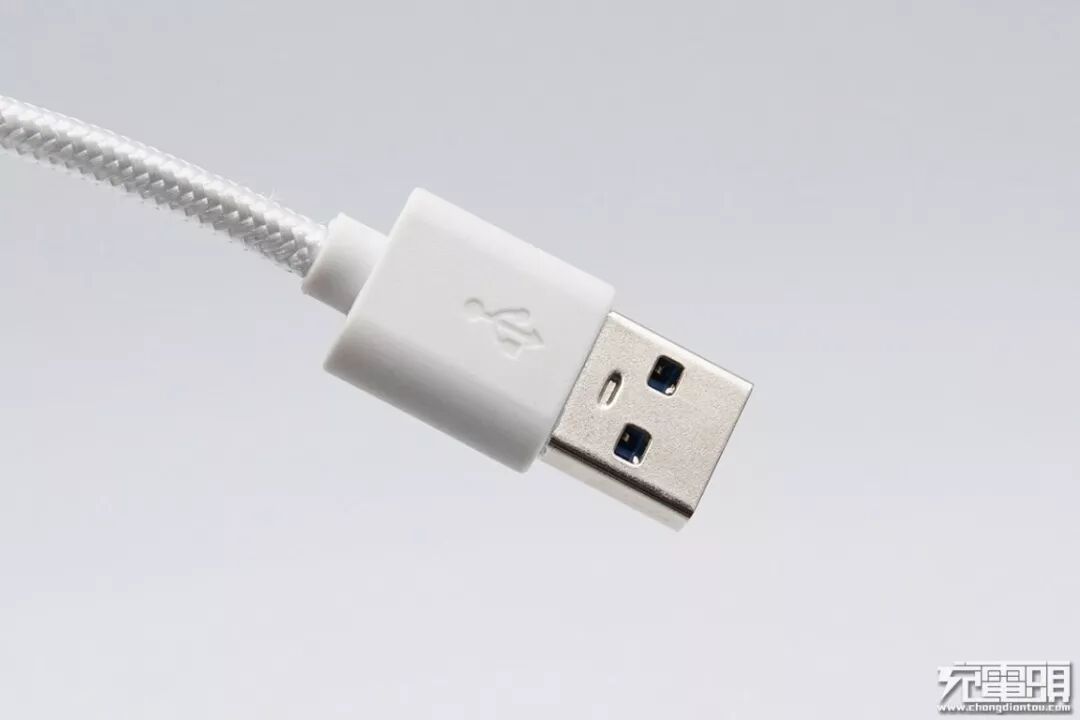 自带的电源线插头为USB-A口,电源线尾端采用加固防弯折的处理。