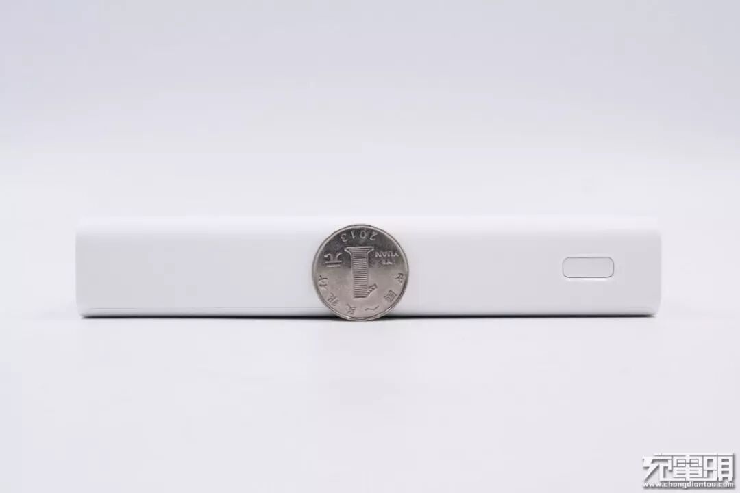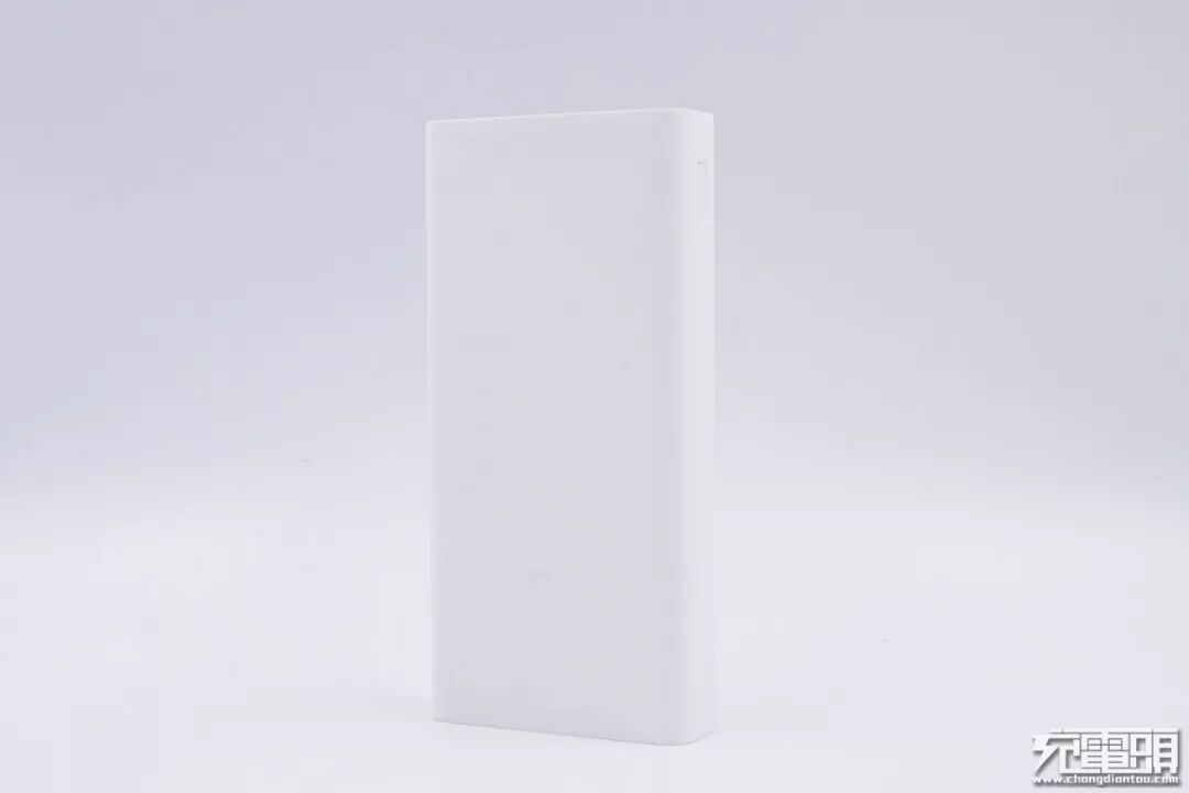 这款USB-C双向快充版小米移动电源3整体看上去非常简洁,白色机身壳采用PC阻燃材质,表面非常的光滑,侧身为弧面过渡不硌手。