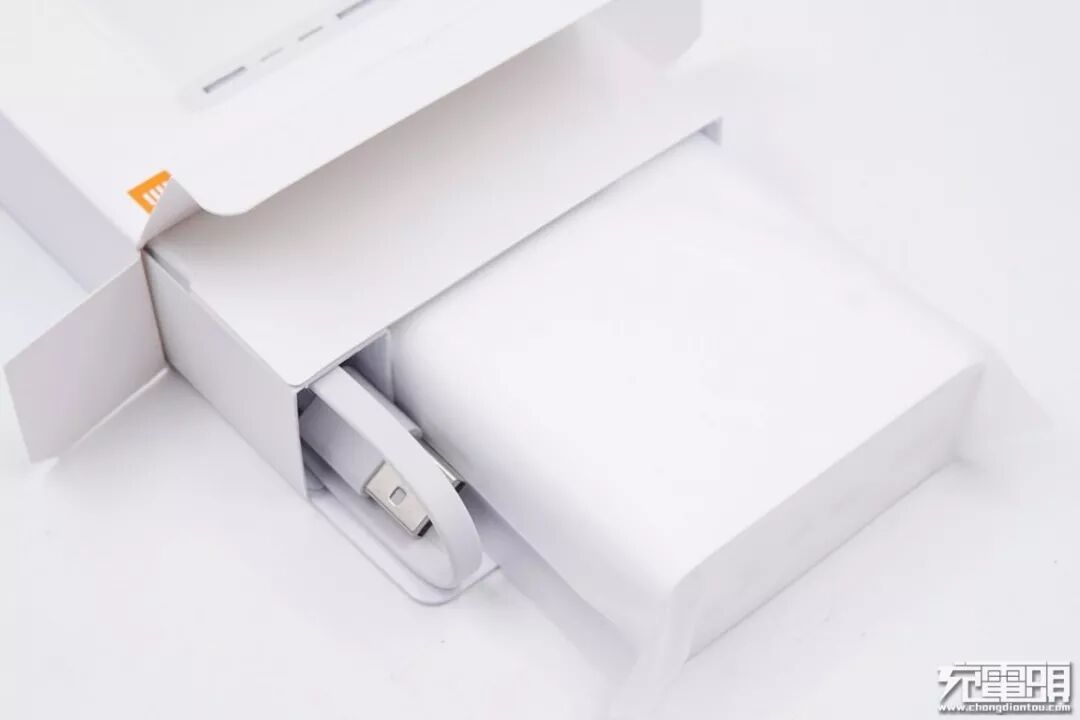 打开包装,里面使用硬质纸盒对产品进行包装固定和保护,移动电源外套有防尘袋。只为消费者可以收到完好的产品。