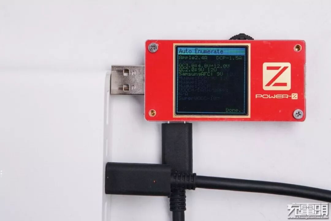 对移动电源的USB-C接口进行快充协议检测,最后得知同样支持Apple2.4A、QC、AFC等快充协议。