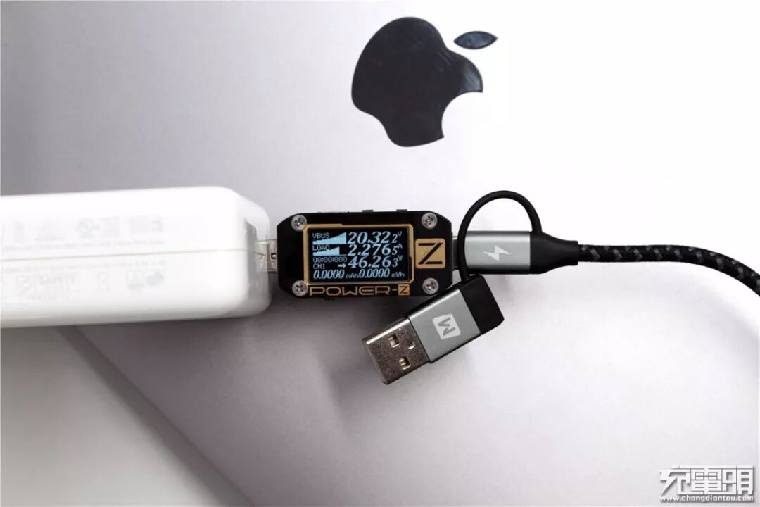 在给MacBook Pro 13英寸 2018款充电时,功率达到了46.26W(20.32V/2.27A)。