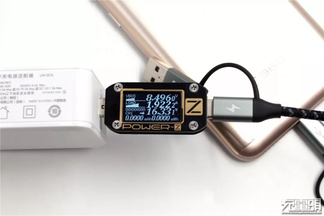 因为Micro USB接口没有CC通讯,Micro USB接口的设备不可能支持PD快充,但是可以支持QC快充,这里用360 N5与带有QC快充的USB-C口充电器作为测试,实测可激活QC快充,当前功率16.33W(电压8.49V/1.92A)。