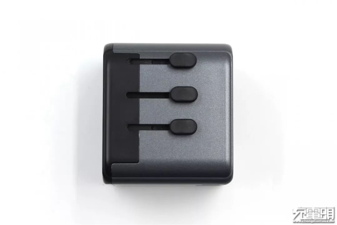 这是三枚滑钮,在充电器背面,分别用来切换不同规格的插脚,从上自下分别是:美规、英规、澳规/中规。