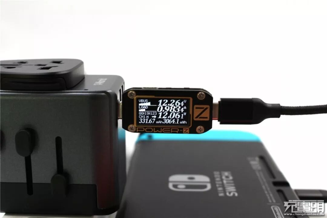 充Switch游戏机,电压12.26V,电流0.98A,功率12.06W,开启PD快充。
