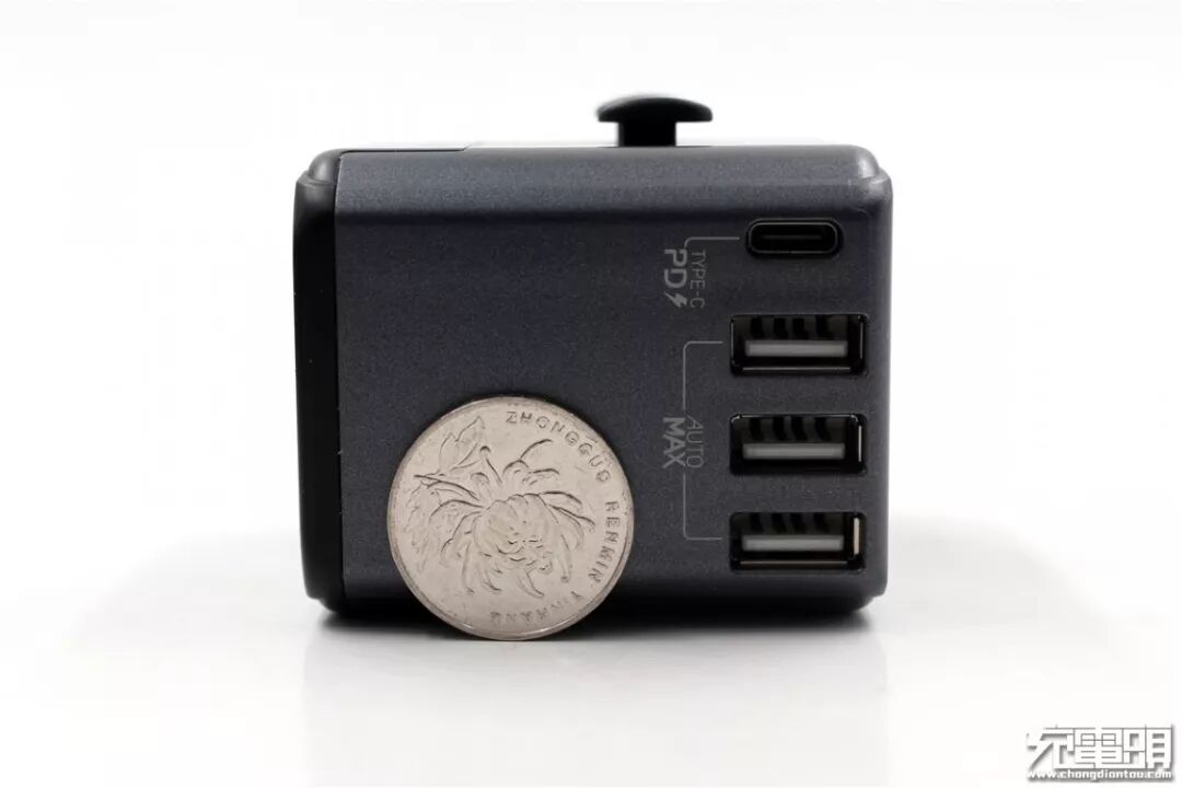 USB输出接口共有4个:三个USB-A,一个USB-C。