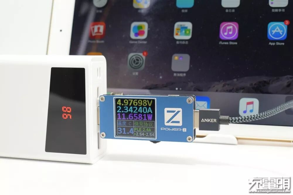 台电C30支持苹果2.4A协议,在给iPad Air2充电时,顺利握手,充电电流约为2.34A,充电功率约为11.7W。