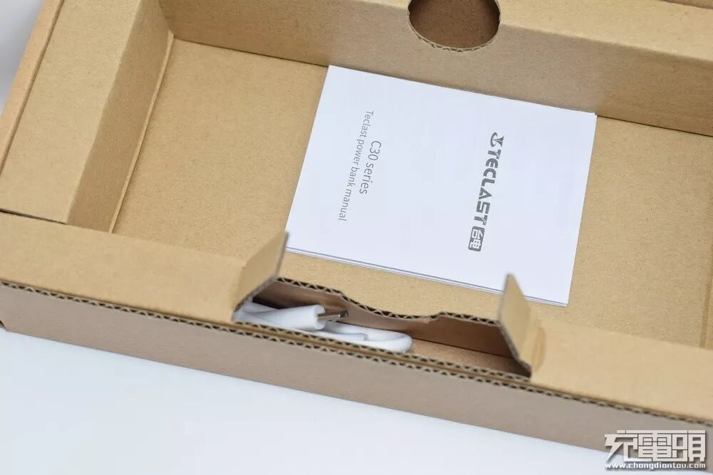 白底加上大面积留白的外包装,凸显了“30000mAh超大容量”的宣传热点,确实超大容量就是此款移动电源的最大亮点。