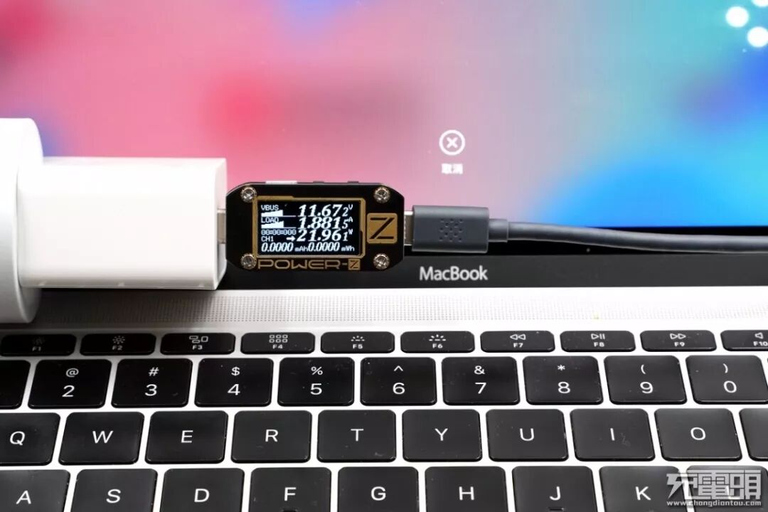 充MacBook,功率21.96W(电压11.67V,电流1.88A),开启快充。