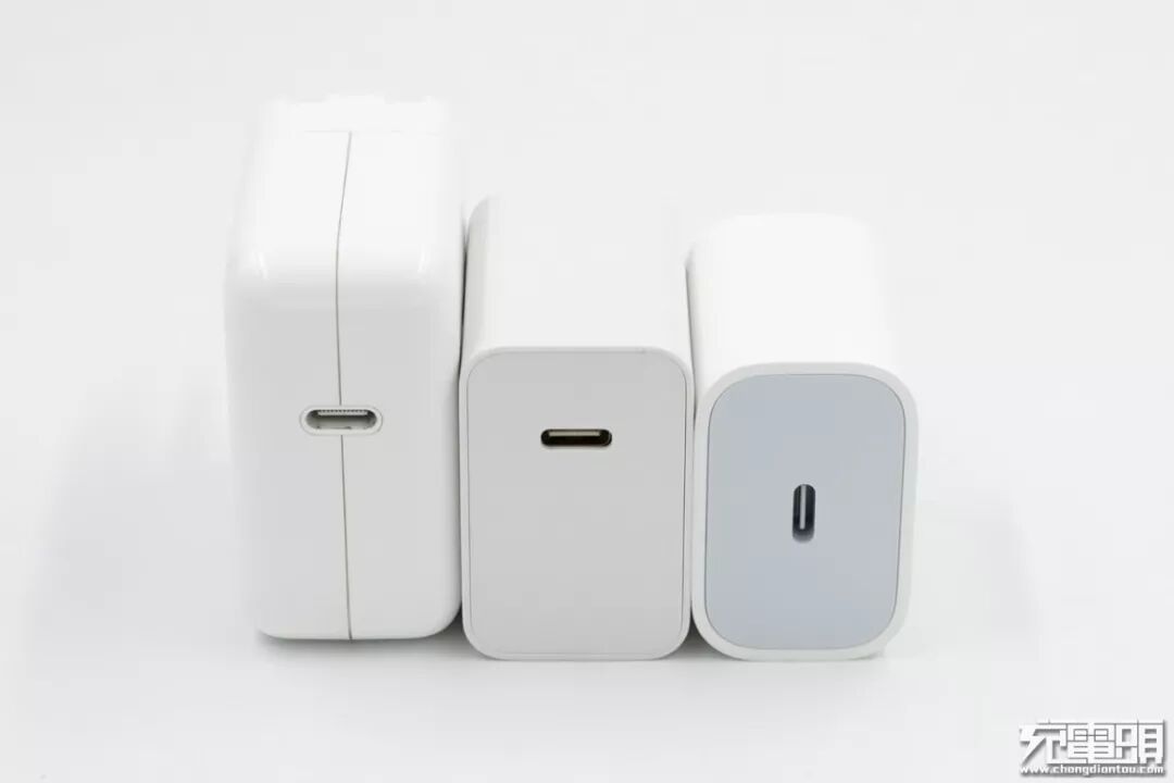 左起分别是苹果30W PD、航嘉27W QC4+、苹果18W PD充电器,航嘉QC4+充电器比苹果30W充电器小,比苹果18W充电器略大,收纳方便。