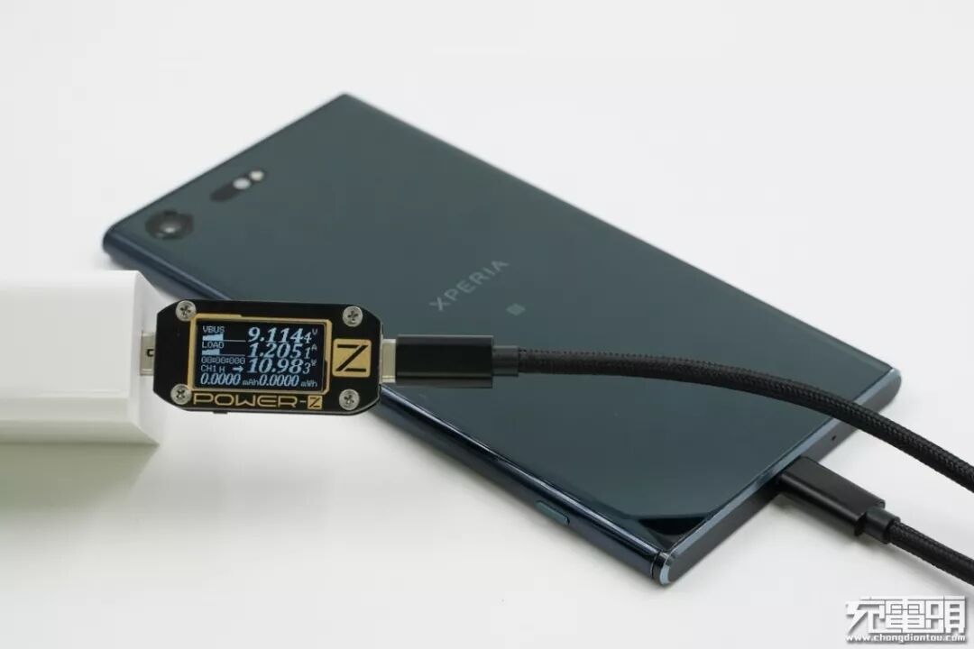 充索尼XZ Premiun,功率10.98W(电压9.11V,电流1.2A),开启快充。